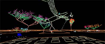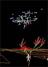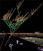 Eidea is a crossroads between the real world and a computer generated artificial life world where images, sound, and lights are created or manipulated through the interactions of the virtual computer realm and the physical world.